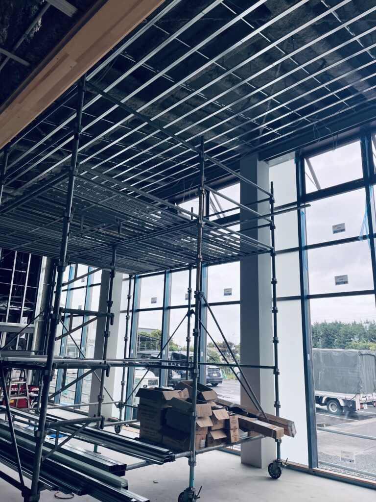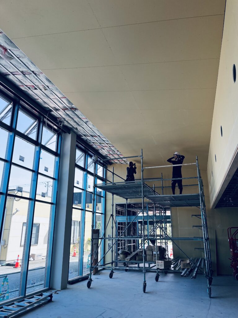 軽鉄工事〜ボード貼り〜岩綿吸音板貼り〜ルーバー取り付け