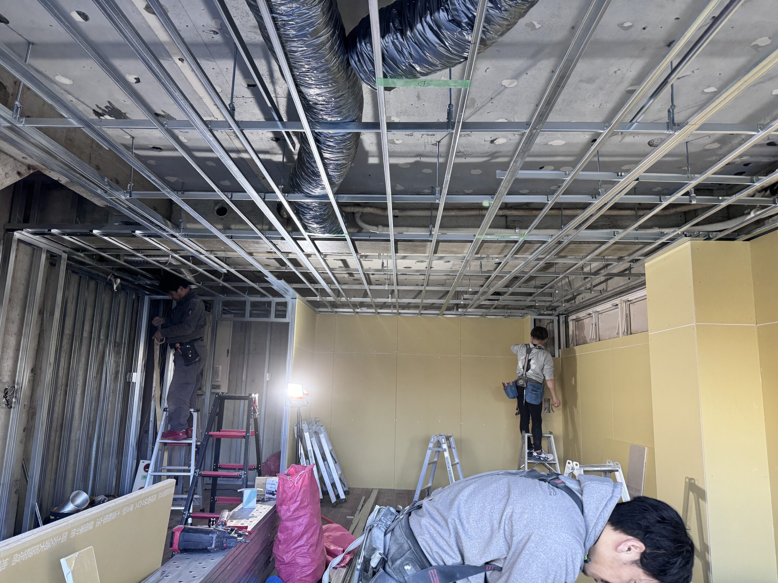弊社ではLGS〜石膏ボード貼りを施工させて頂きました。